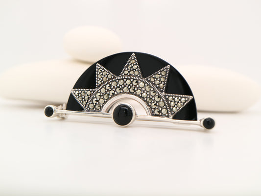 Vendor:Vintage CollectionOnyx and mother of pearl art deco bracelet in sterling silver with marcasite