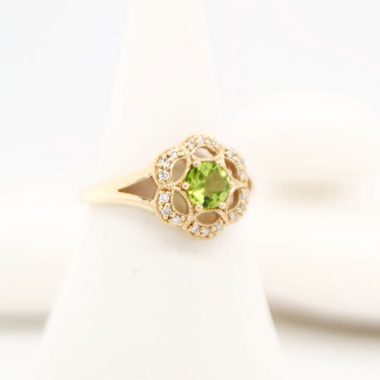 Hook dangle earrings with peridot and freshwater pearl drop in 9k yellow gold