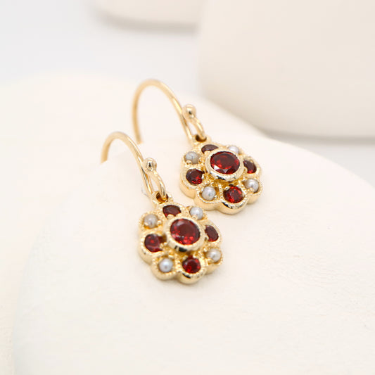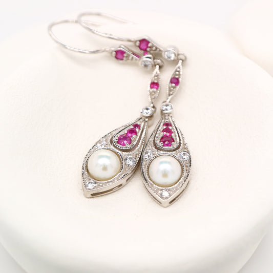 Vendor:Heirloom CollectionDangle earrings with fresh water pearl, ruby and diamond in 9k white gold