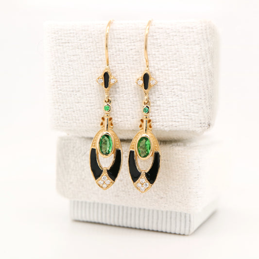 Dangle earrings with fresh water pearl, emerald and diamond in 9k white gold