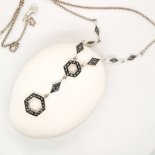 Vendor:Heirloom CollectionArt deco style pendant with natural sapphire and diamonds in 9k white gold