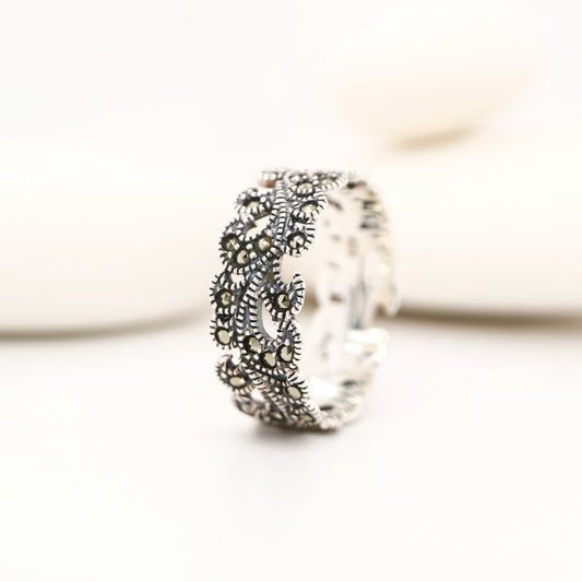 Vendor:Vintage CollectionStud earrings with Checkerboard cut black onyx, marcasite in sterling silver