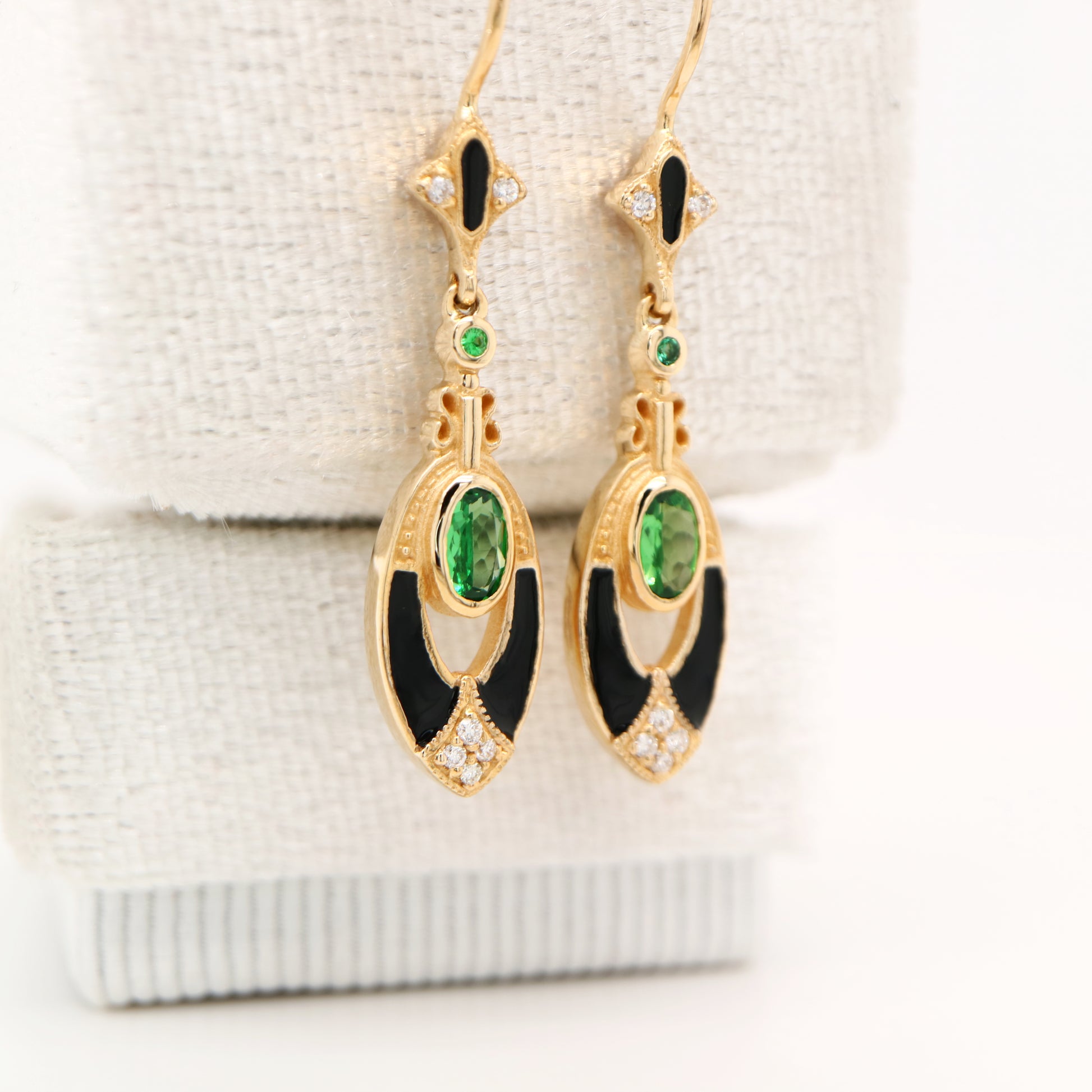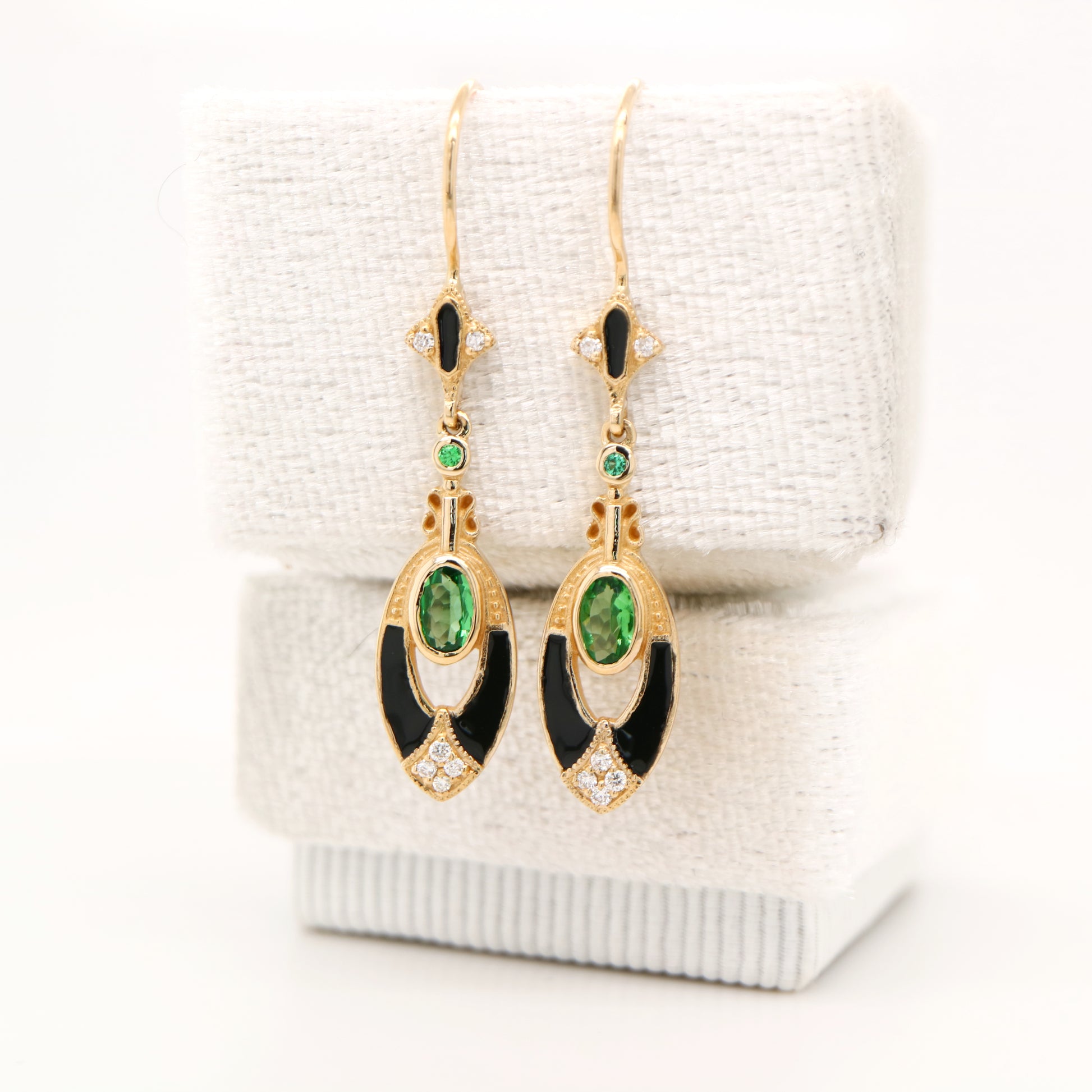 Tsavorite Garnet with diamonds, drop earrings in 9k yellow gold