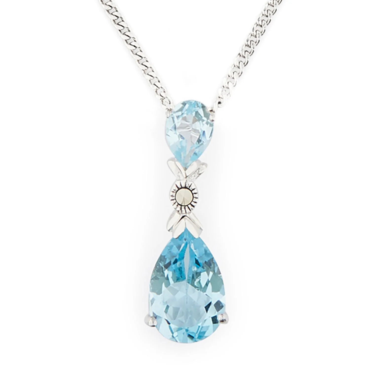 Art Deco Pendant Necklace in Blue Topaz, Marcasite and Sterling Silver