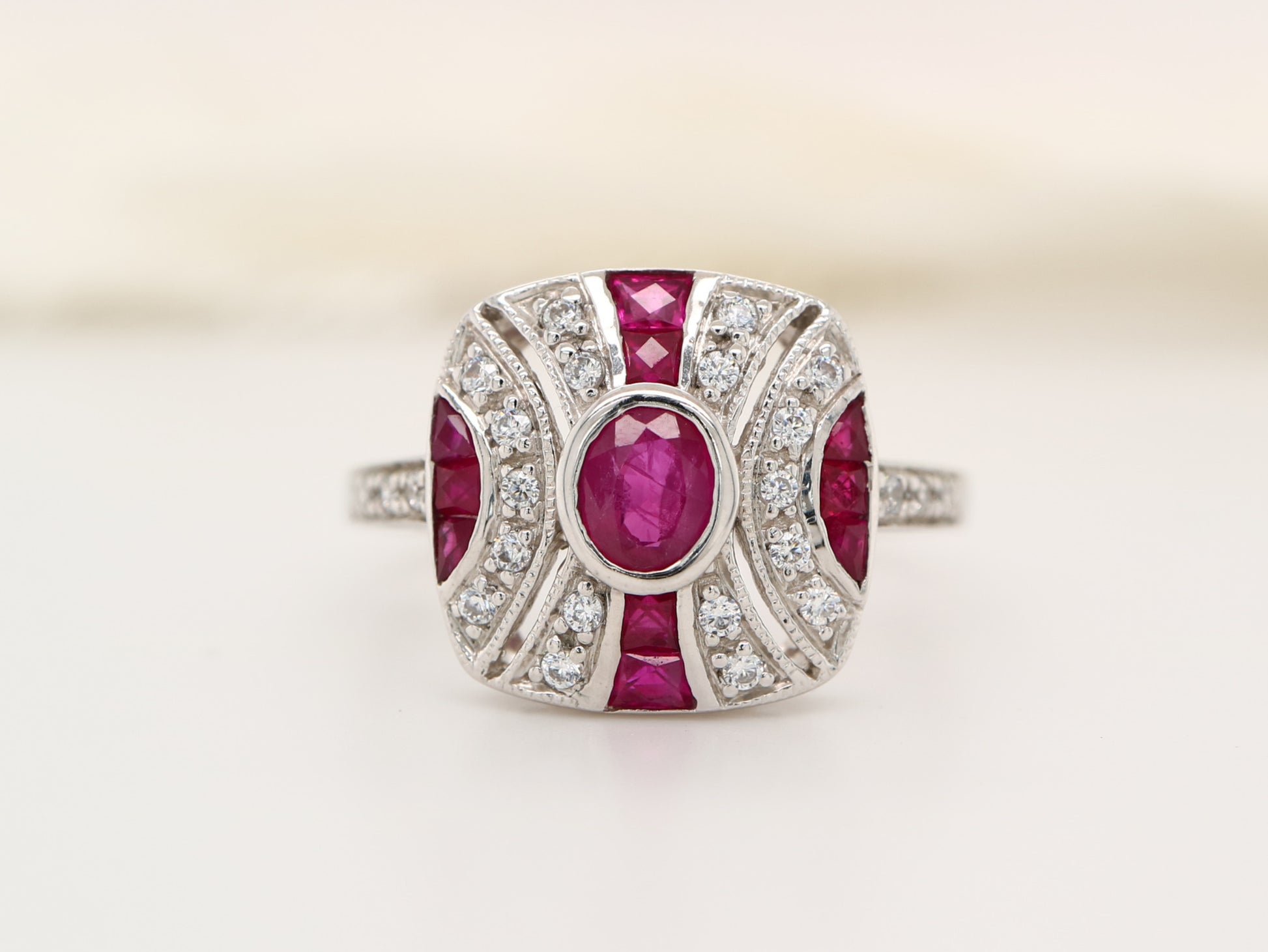 - Centre stone: Oval Ruby size 5x4 mm, weight approx. 0.5-carat French cut