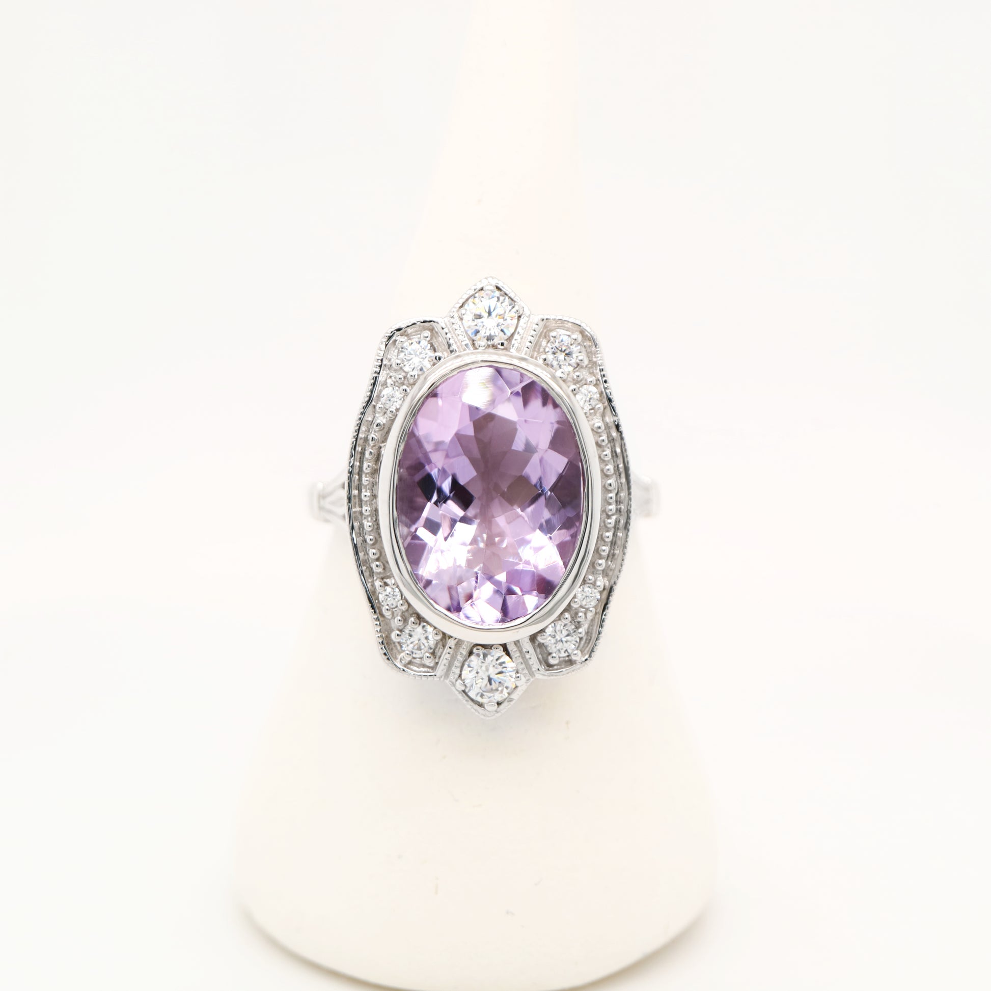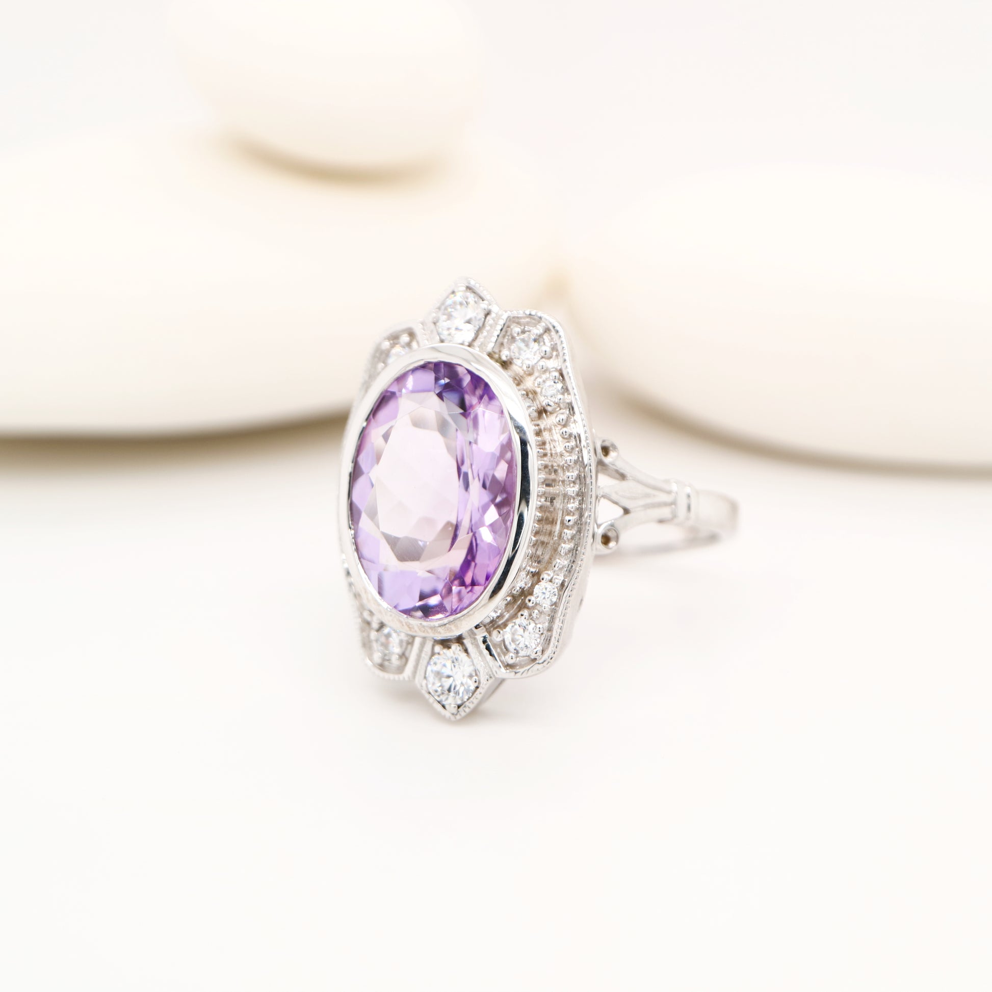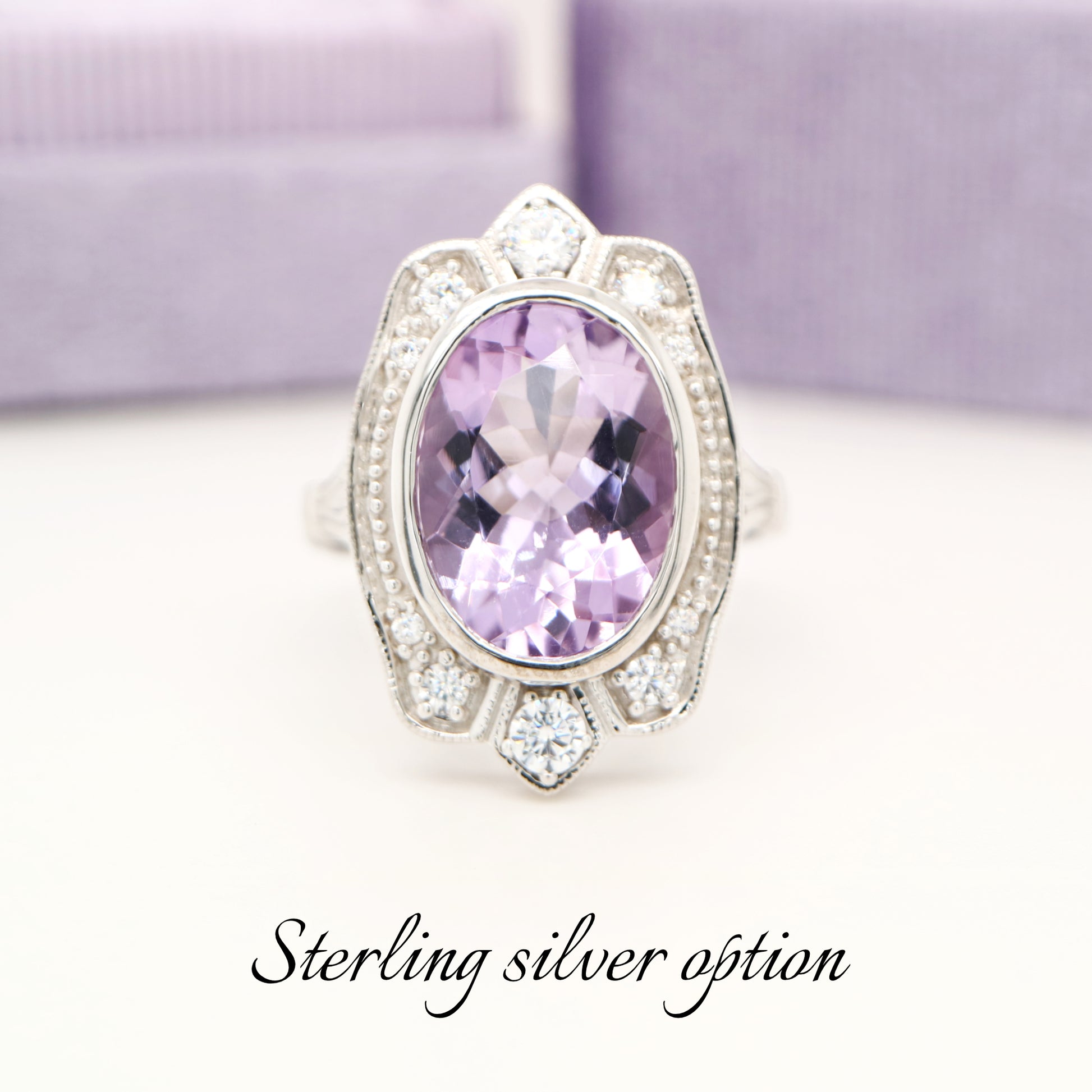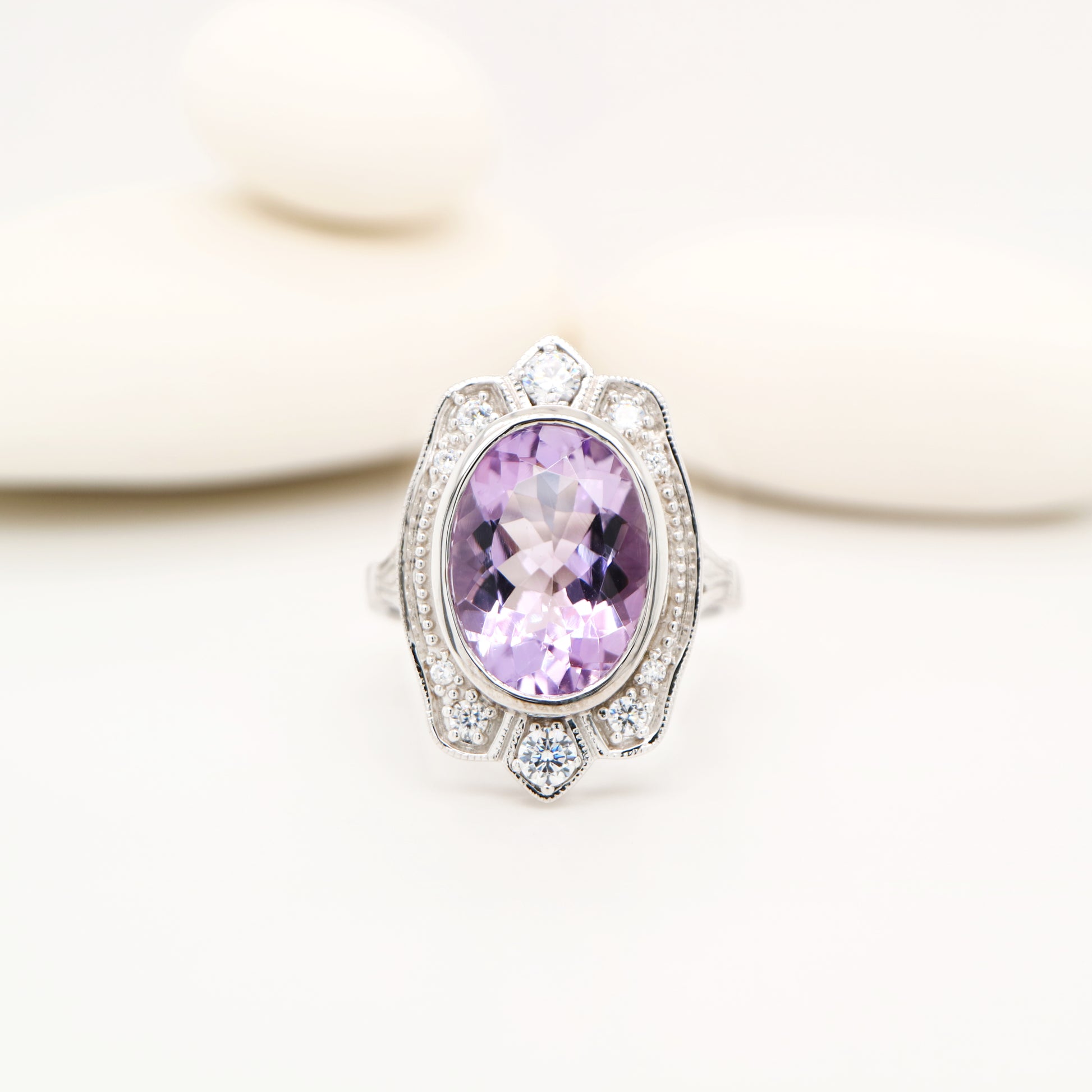 Rose de france amethyst cocktail ring with cz in sterling silver