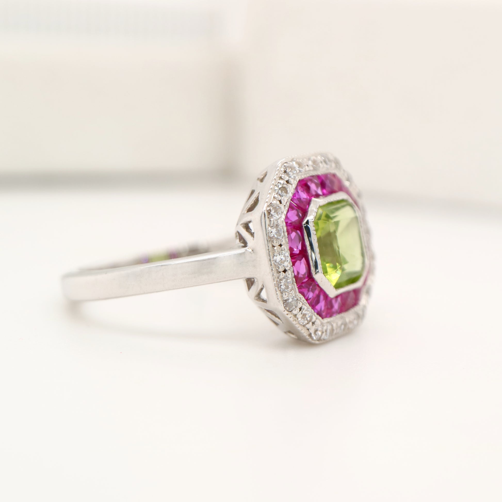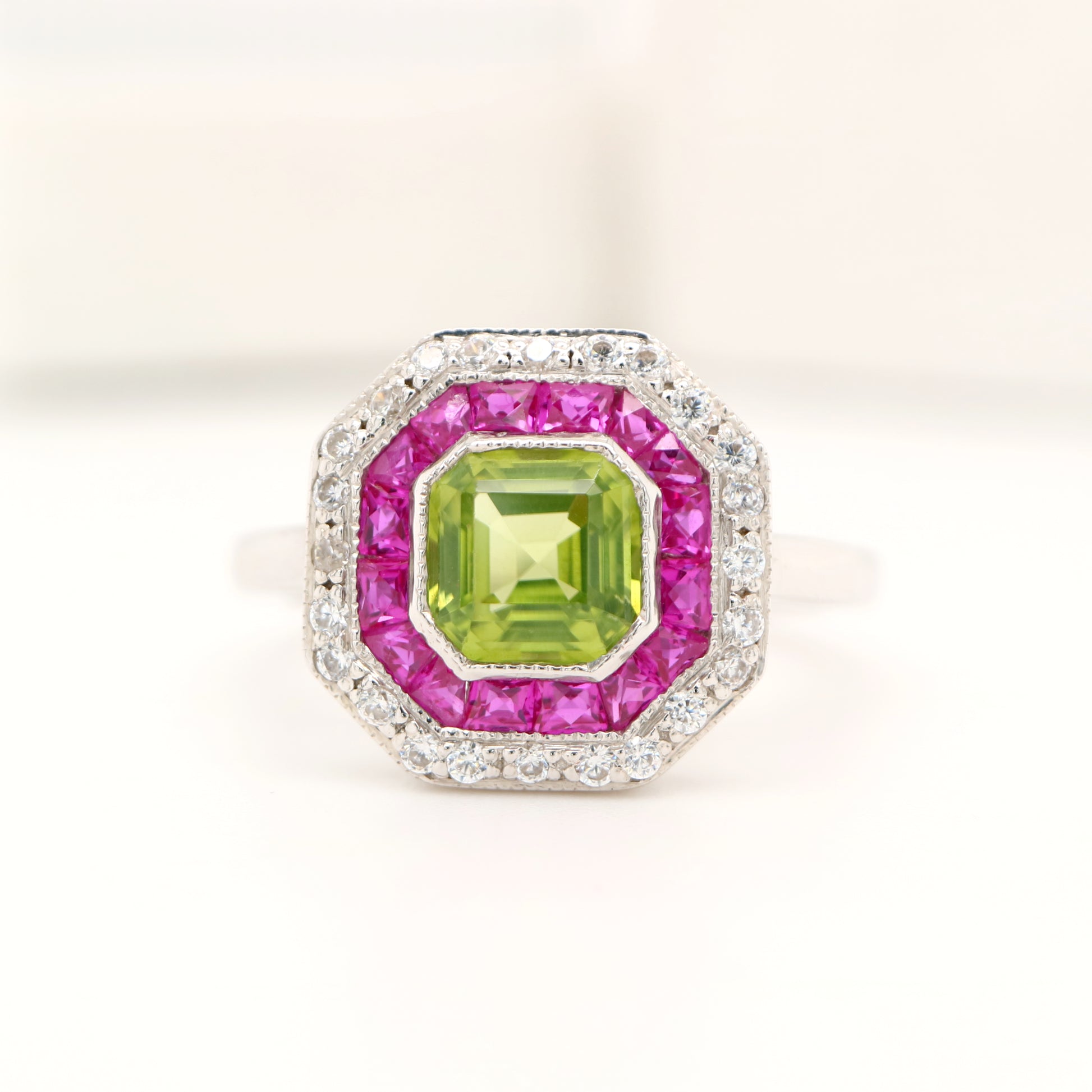 - Center asscher cut Peridot size 6x6 mm weight approx. 1.25 carat